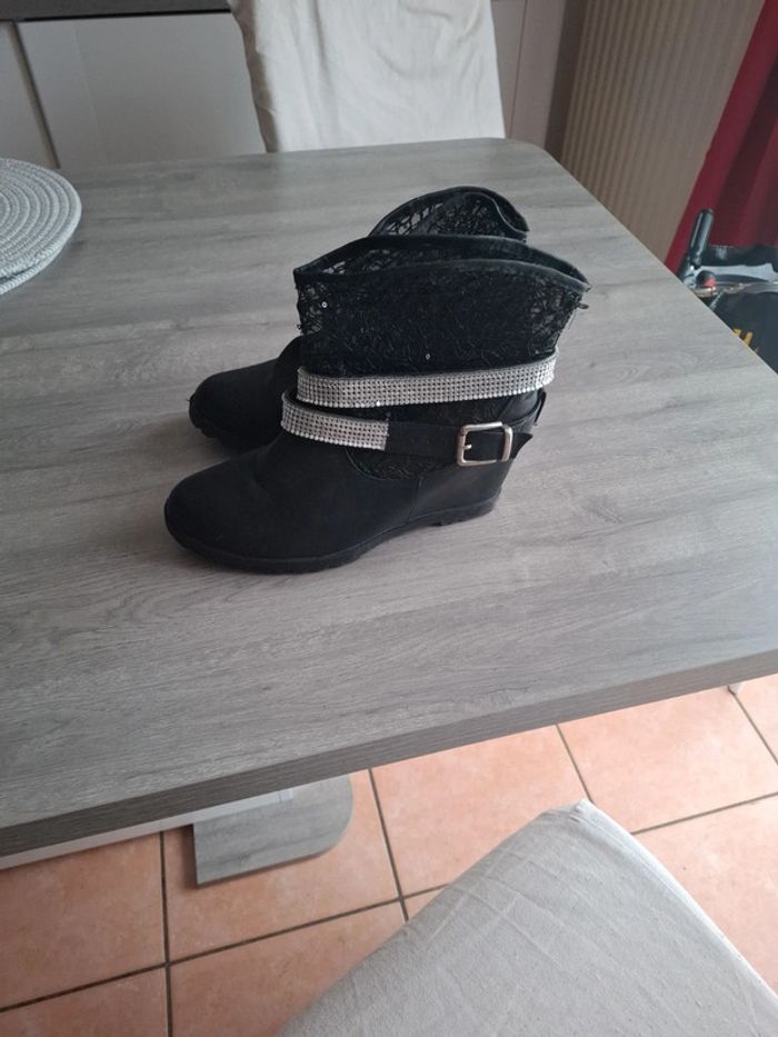 Bottine femme que l'on peu mettre été comme hiver talon rehausser à l'intérieur une perle enlever vue sur la photo