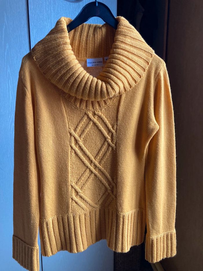Superbe pull torsadé très chaud jaune moutarde col roulé Trend one taille M - photo numéro 1