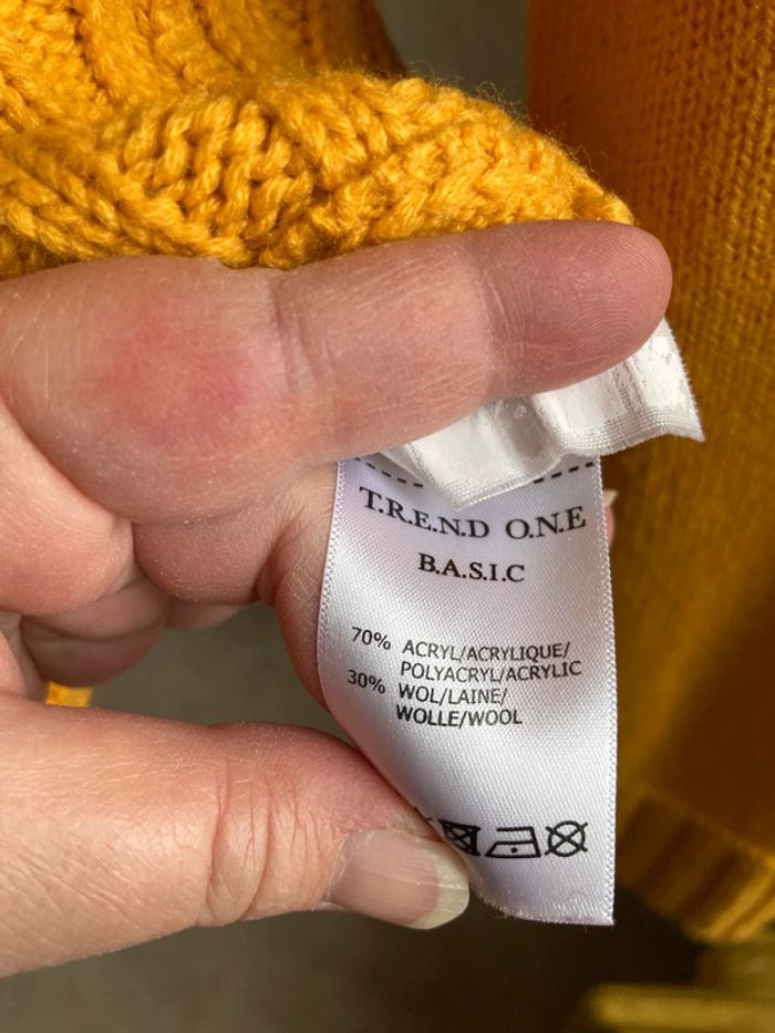 Superbe pull torsadé très chaud jaune moutarde col roulé Trend one taille M - photo numéro 11