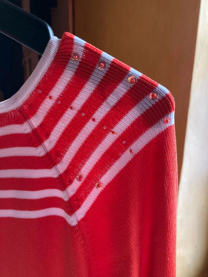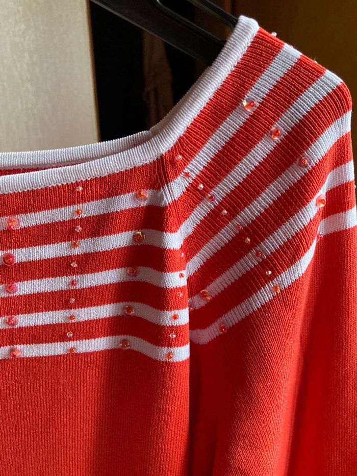 Superbe pull ligné avec perles Vintage années 80 - photo numéro 3