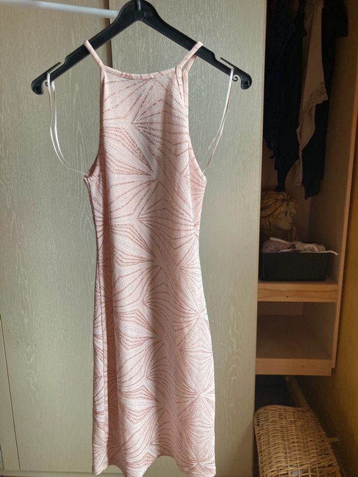 Superbe robe mini neuve beige et dorée à paillettes taille 36 - photo numéro 8