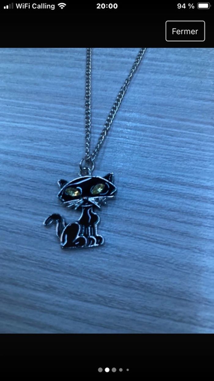 Superbe collier pendentif argent avec chat noir neuf - photo numéro 4