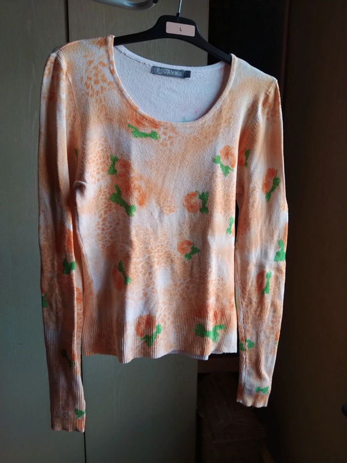 Superbe pull bien chaud fleuri et coloré Vert orange taille L - photo numéro 1