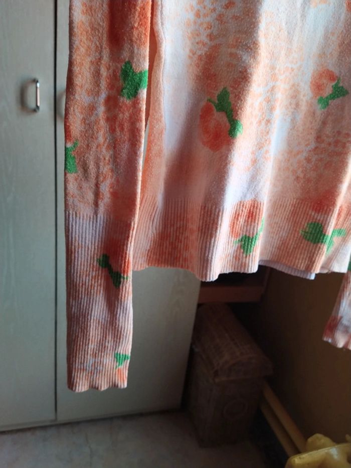 Superbe pull bien chaud fleuri et coloré Vert orange taille L - photo numéro 4