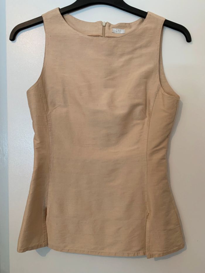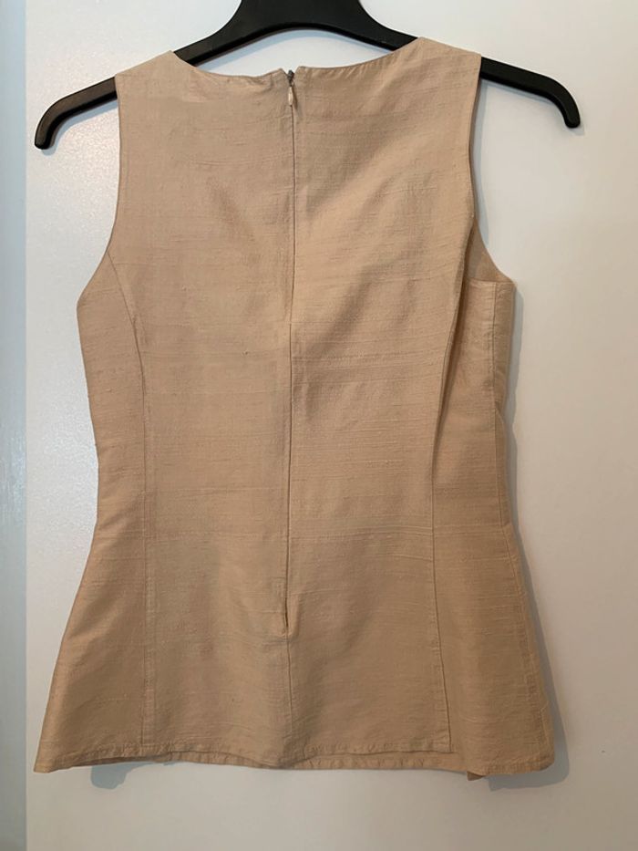 Vends magnifique tunique en soie de la marque PROMOD. Taille 36 (ou petit 38) Longueur (mesure prise à plat) du dessous de l’aisselle au bas: 40 cm Couleur beige crème. Fermeture dans le dos par un zip très discrète. Suite à prise de poids, je rentre difficilement dedans, donc ne me demandez pas d’autre photo 😋 Je vends beaucoup d’autres articles de marques: Zadig & Voltaire, IKKS, Karen Millen, LEE, Mango, Zara, Comptoir des Cotonniers, COP COPINE, Kanabeach