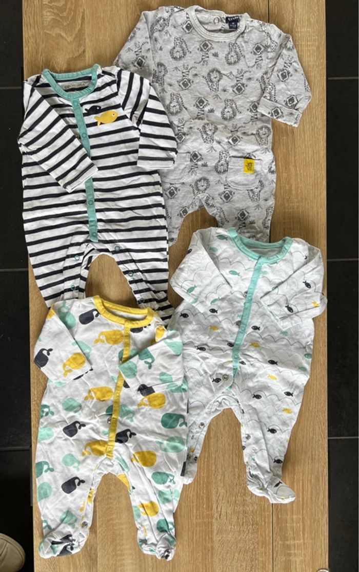 Lot 4 pyjamas 1 pièce 1 mois Orchestra et Kiabi