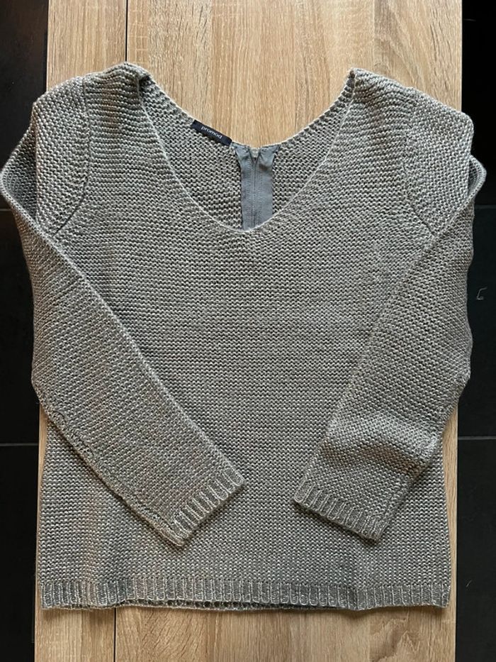 Pull original effet côte de maille gris fils argentés Promod M