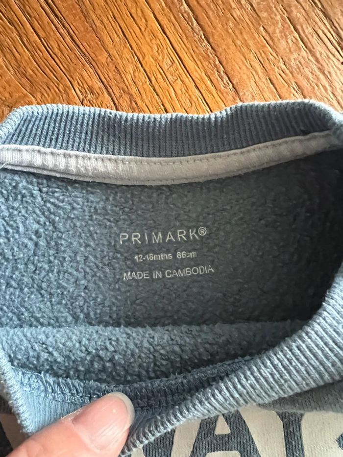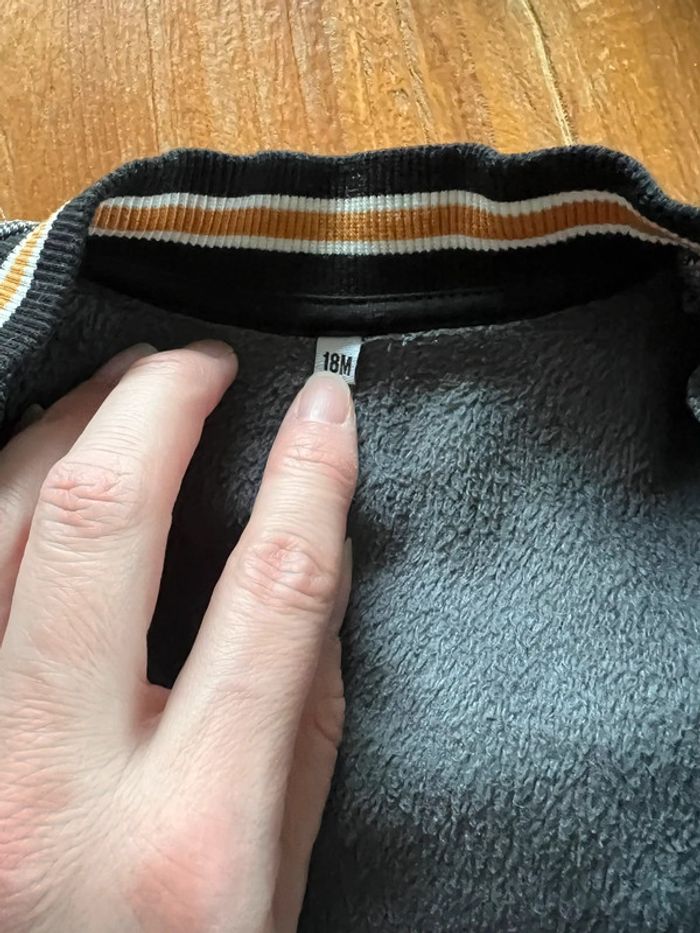 Vends lot de taille 18 mois - 1 ensemble sweat et bas de jogging survêtement marque PRIMARK, bon état - 1 sweat très beau avec écusson lion, très douillet à l’intérieur, pas de marque visible, état neuf - 1 sweat marque NPO avec dessin ours qui plaît beaucoup aux enfants, bon état