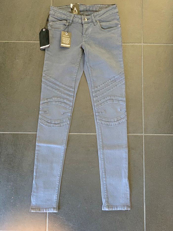 Neuf Jean motard biker skinny gris taille basse Dr DENIM T36 38 long - photo numéro 2