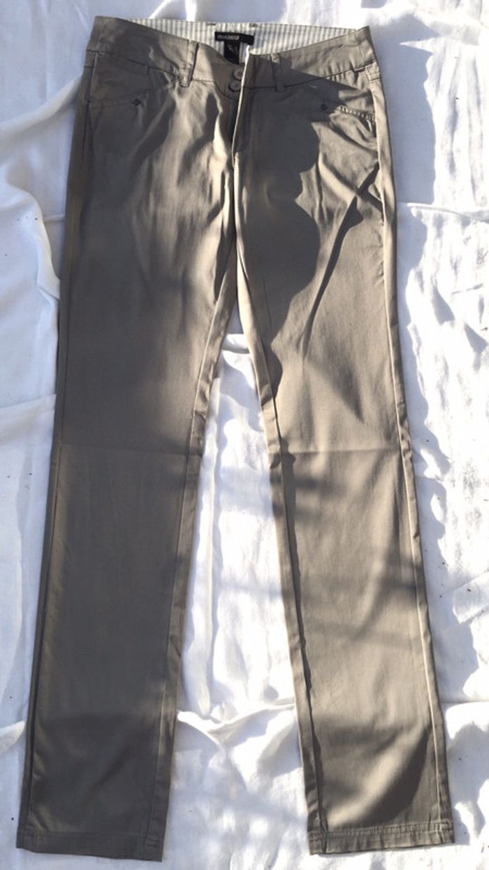 Pantalon droit tissu gris clair Mango basics T 38 - photo numéro 3