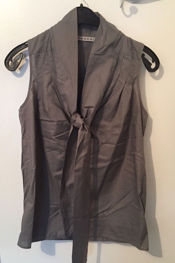 Chemisier top lavallière sans manche gris Kookaï T36 - photo numéro 4