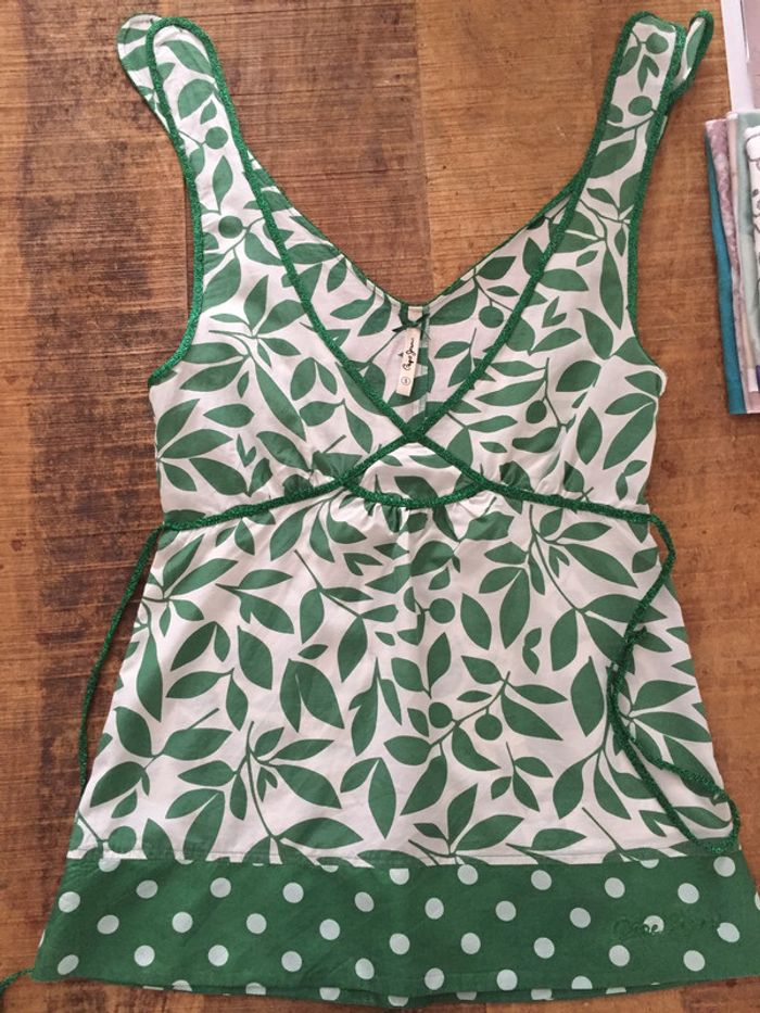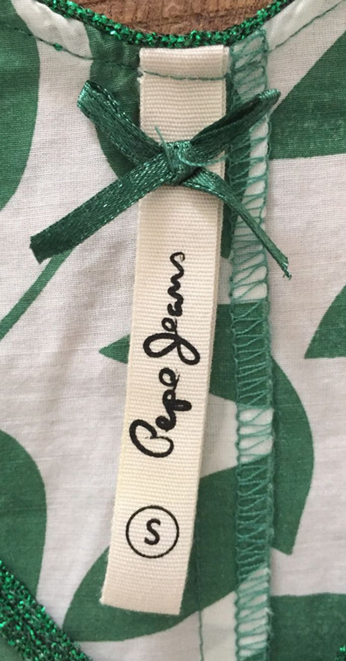 Neuf Top Pepe Jeans soie vert blanc S 36 - photo numéro 3