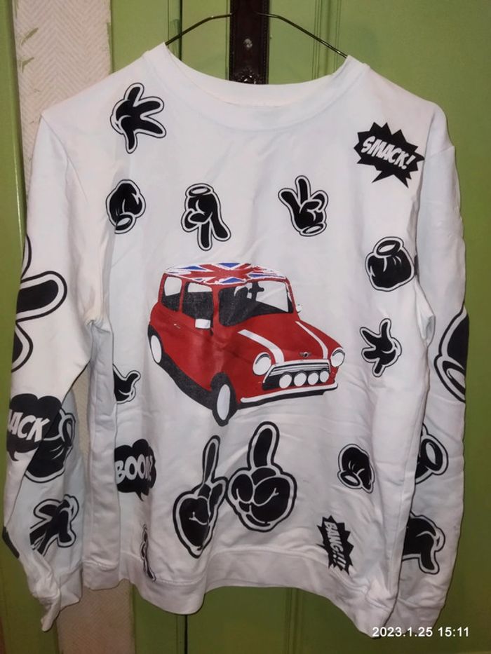 Pas de taille indiquée, mais peut être un S et/ou un petit M. #pullover #pull #minicooper