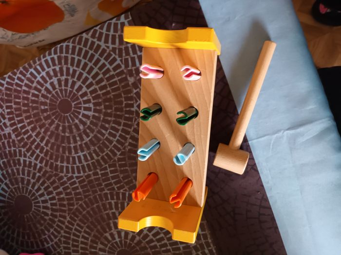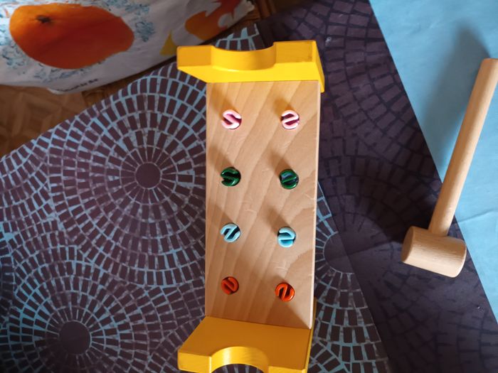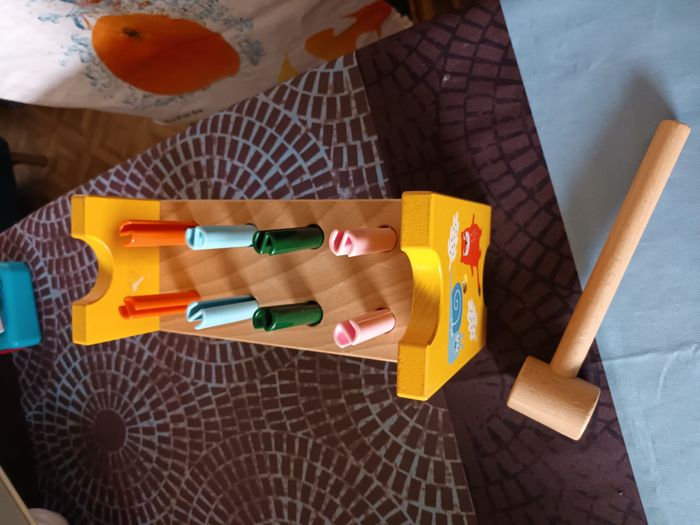 etabli en bois avec marteau