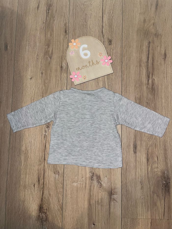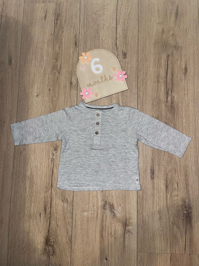 T-shirt manches longues + patte de boutonnage. Très bon état. 6mois/ 63-69cm/ 8kg.