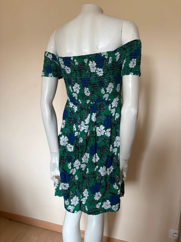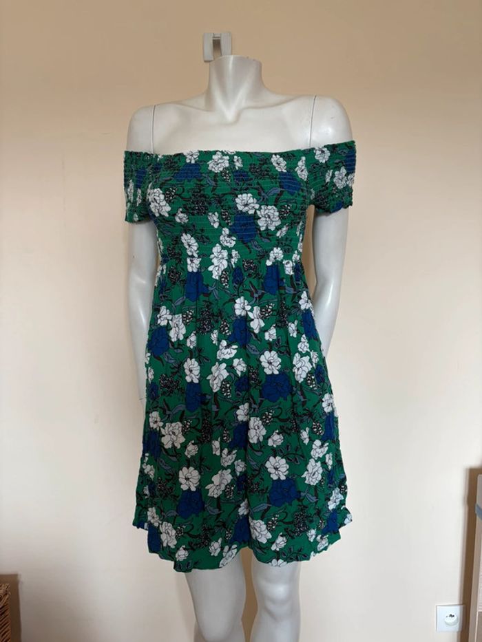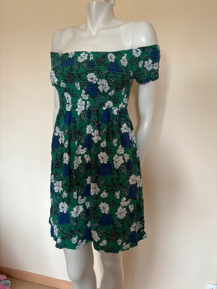 Optez pour un look frais et féminin avec cette robe verte fleurie de chez Pimkie. Parfaite pour les journées ensoleillées, elle est légère et agréable grâce à sa matière 100% viscose. En très bon état, elle ajoutera une touche de couleur à votre garde-robe.