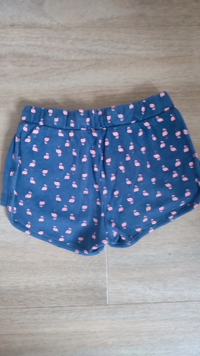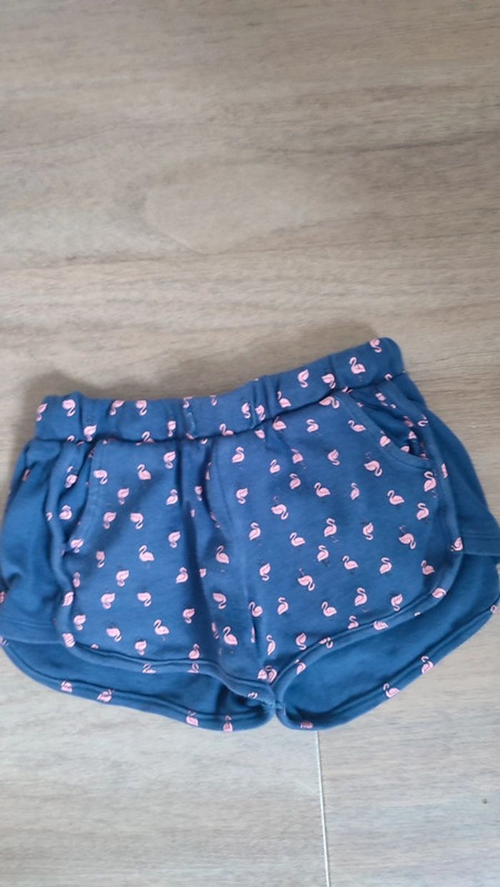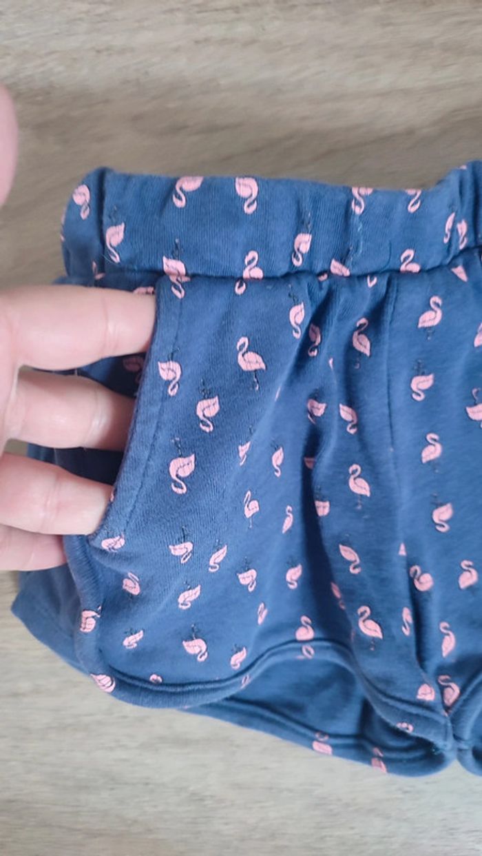 Short bleu marine avec des poches et des flamants roses pour motif. #liloupinette_5ans