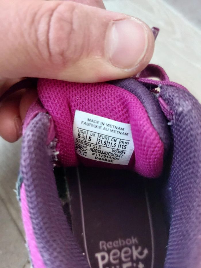 Vends une paire de Reebok pour enfant, taille 21,5. Elles sont en bon état. Couleur violette. #liloupinette_chaussures21 #liloupinette_chaussures22