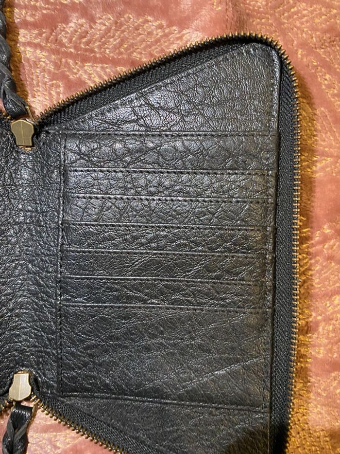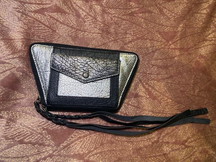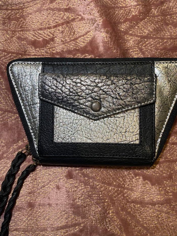 Portefeuille noir argenté Paul Marius Servis que 2 fois , en très bon état . Largeur 21 cm Hauteur 12 cm Profondeur 2 cm