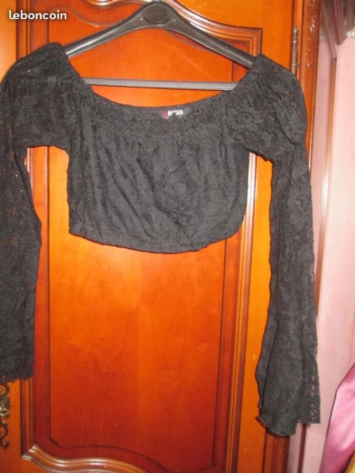 Top crop noir tout en dentelle manches longues doublé sur le devant Morgan t 36 Neuf jamais porté #zara #hautcourt #brassiere #bershka #stradivarius #festival