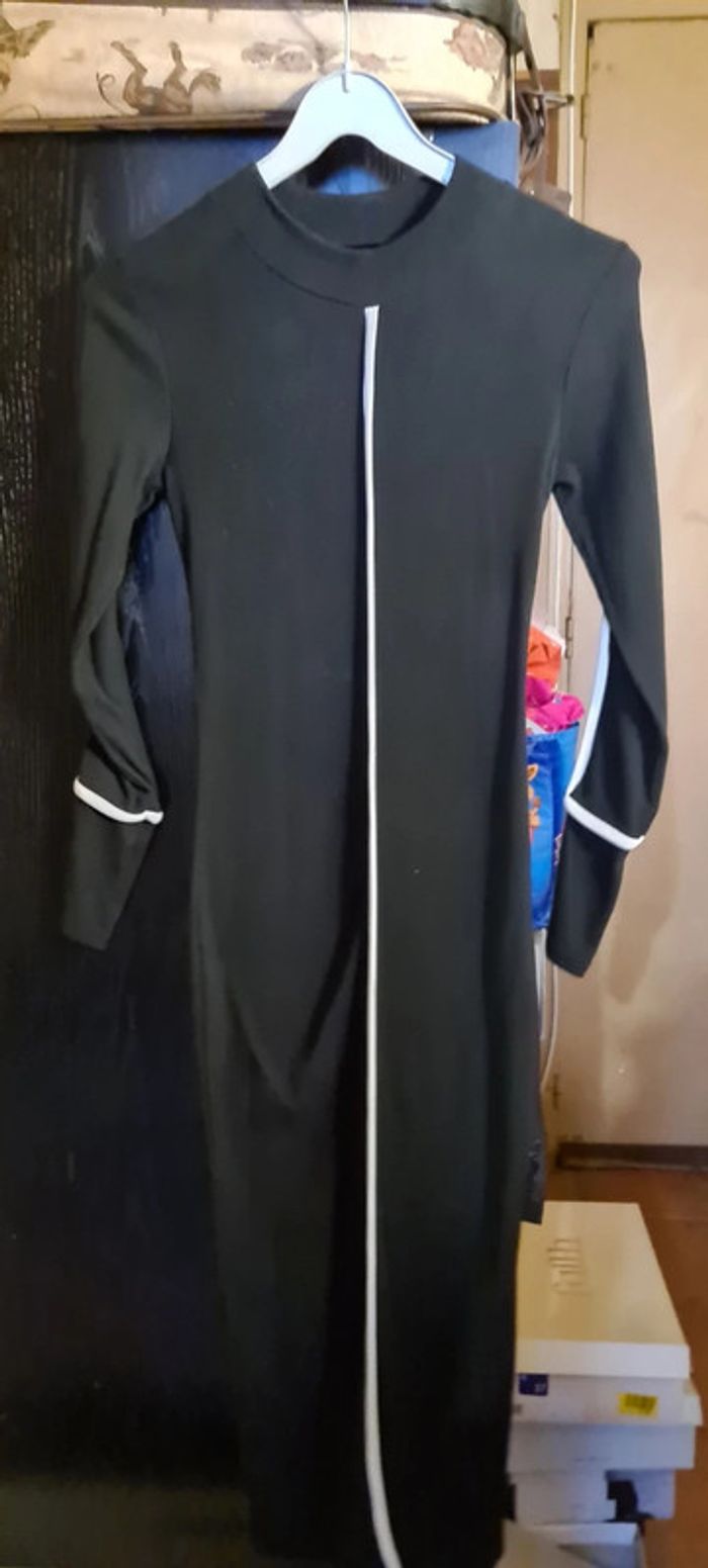 Très jolie robe longue noire liseré blanc col montant près du corps T S Très bon état portée une fois #zara #bershka #stradivarius #jupelongue