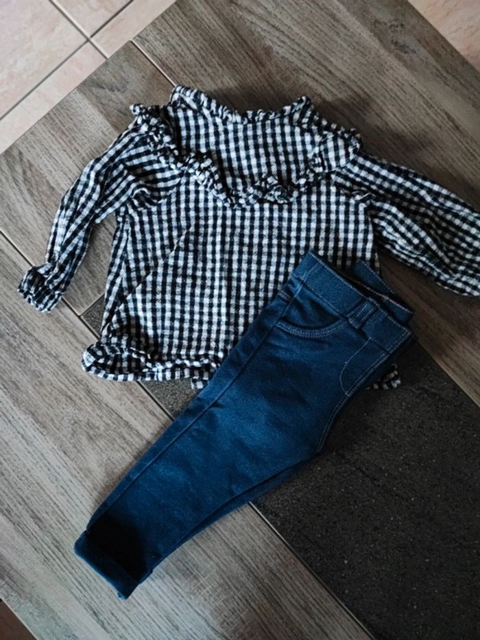 Chemise Kiabi Legging type jean Kiabi 9 mois Très bon état #legging #chemisecarreaux #bébé #9mois #paulinecormierfille9mois
