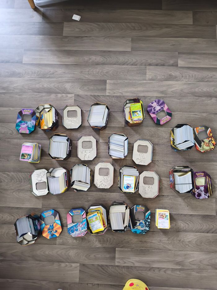 Bonjour, Je vends mes cartes pokemon, toute collection confondue, en très bon état car je les conserve dans des boites dès leurs ouvertures. En effet, j'en ai accumulé beaucoup et je pense qu'elles seront plus utiles à des joueurs que dans des boites ! :) Il y a environ 4500 cartes parmi lesquelles des classiques, des holo et des reverse. Je vends également des boites vides (mini tins, pokeball, boites longues, et boites dans lesquelles je range les cartes - voir photo -) ! Au niveau des prix CONTACTEZ MOI DIRECTEMENT CAR CELA VA DEPENDRE DU NOMBRE DE CARTES que vous souhaiterez acheter ET de si vous prenez des boites avec ! PRIX NEGOCIABLE ! Je vous attend :) !