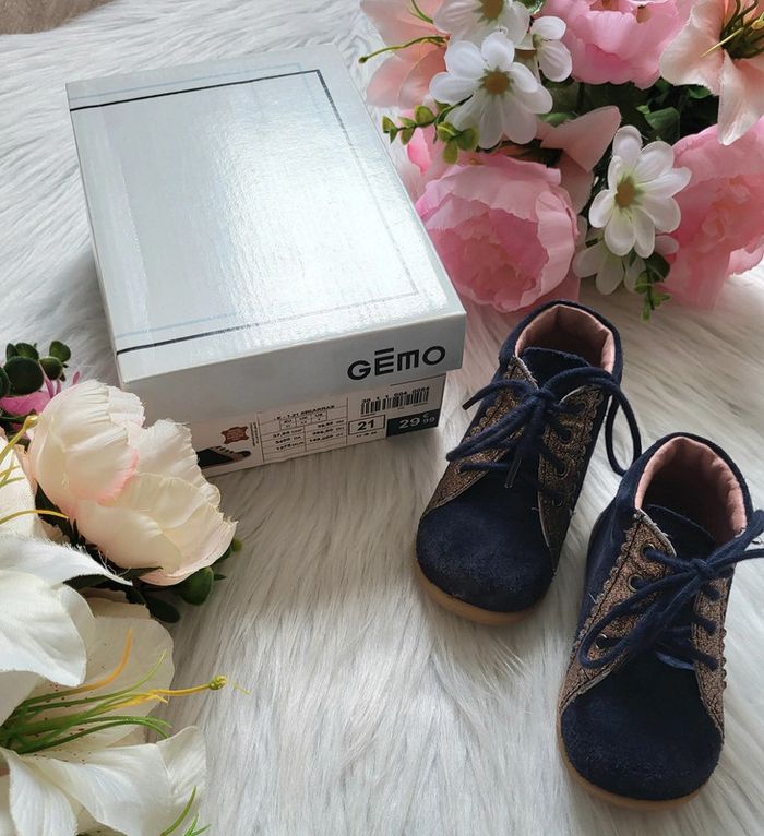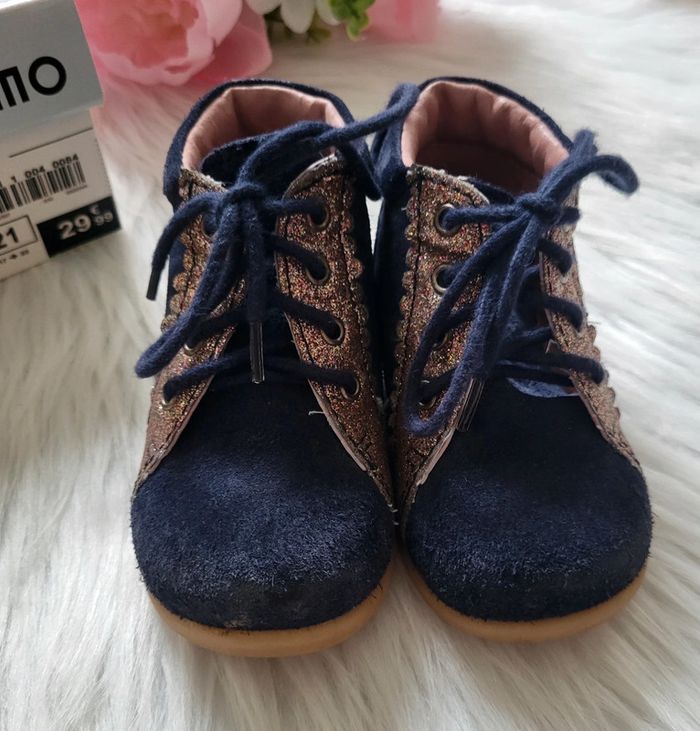 🌺Très bon état petite imperfections rien de méchant voire photo 🌺 Bottine avec renforts arrière et avant, tige légèrement montante, semelle flexible et antidérapante, col rembourré. Des bottillons premiers pas équipées de lacets pour un ajustement parfait et un maintien optimal du pied. Elles seront aussi belles avec une robe qu'avec un jean retroussé.