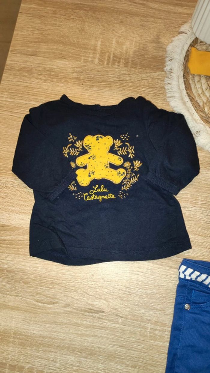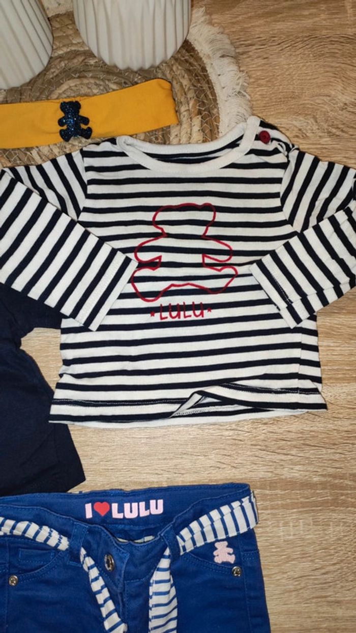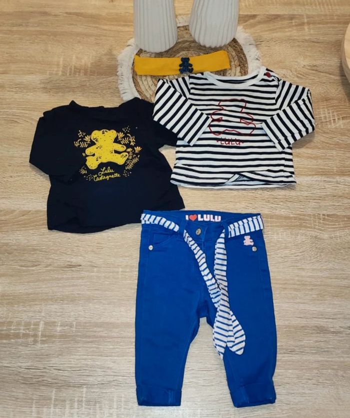 A vendre ensemble fille 3 mois Lulu castagnette Bandeau, 2 hauts mâche longue et un jeans Très bon état
