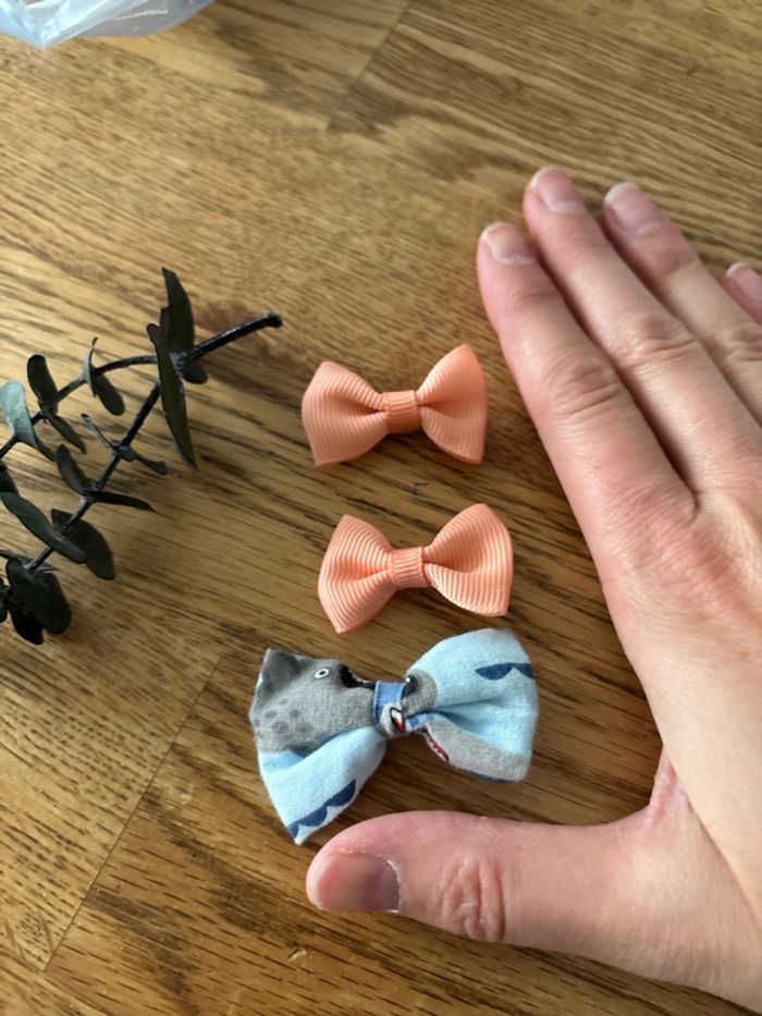Lot de 3 pinces crocodiles noeud en tissu Taille bebe pour les barrettes corail ( achetées dans le commerce) Motif requin mer pince un peu plus grande cellu ci est faite main