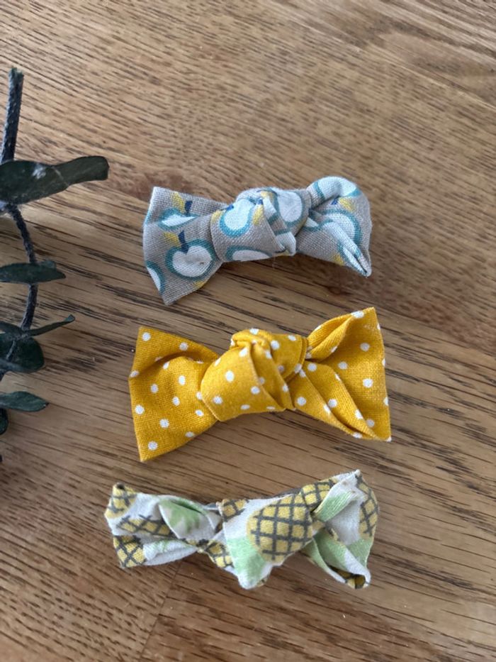 Fait main Lot de 3 pinces crocodiles noeud en tissu Pois moutarde et blanc Petite pommes Ananas