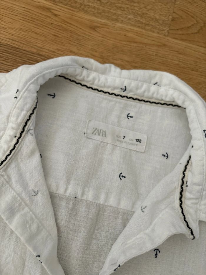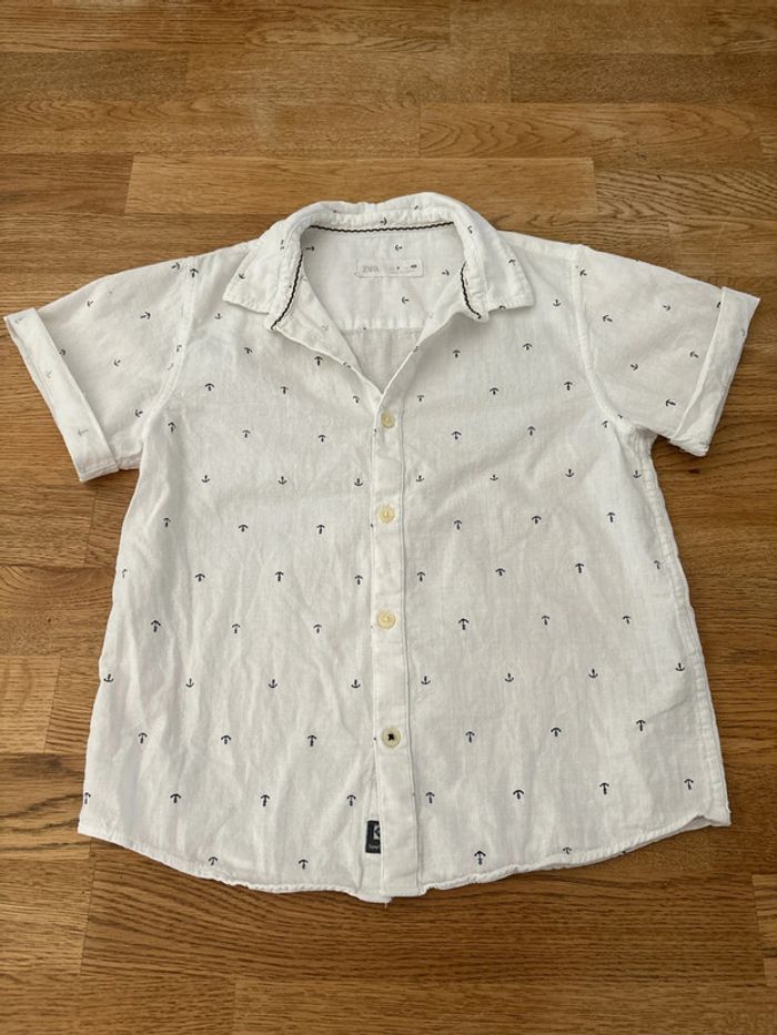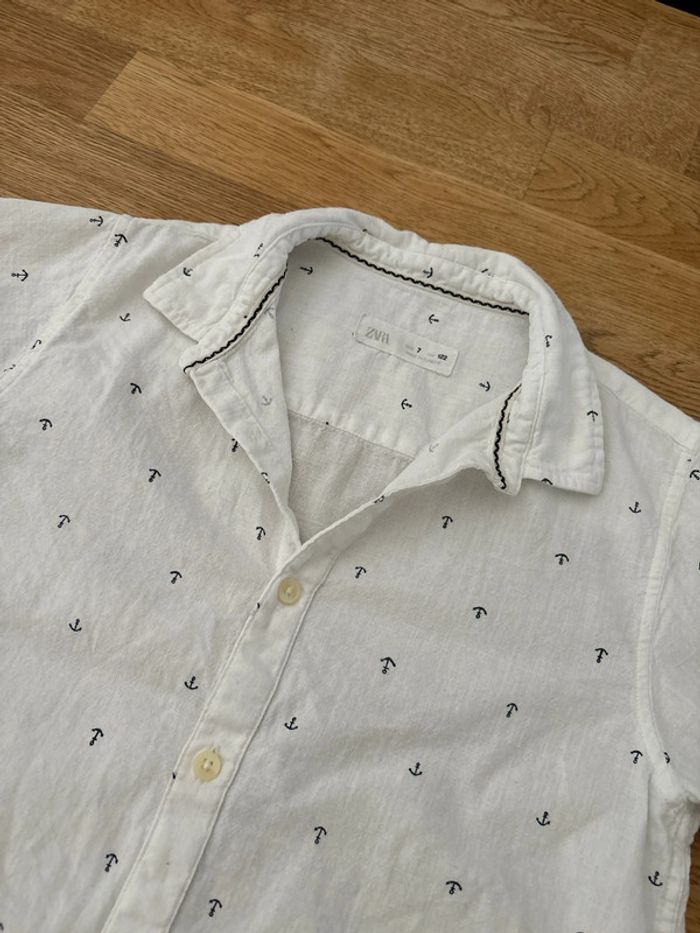 Chemise garcon manches courtes blanche avec motif encre marine 7 ans zara