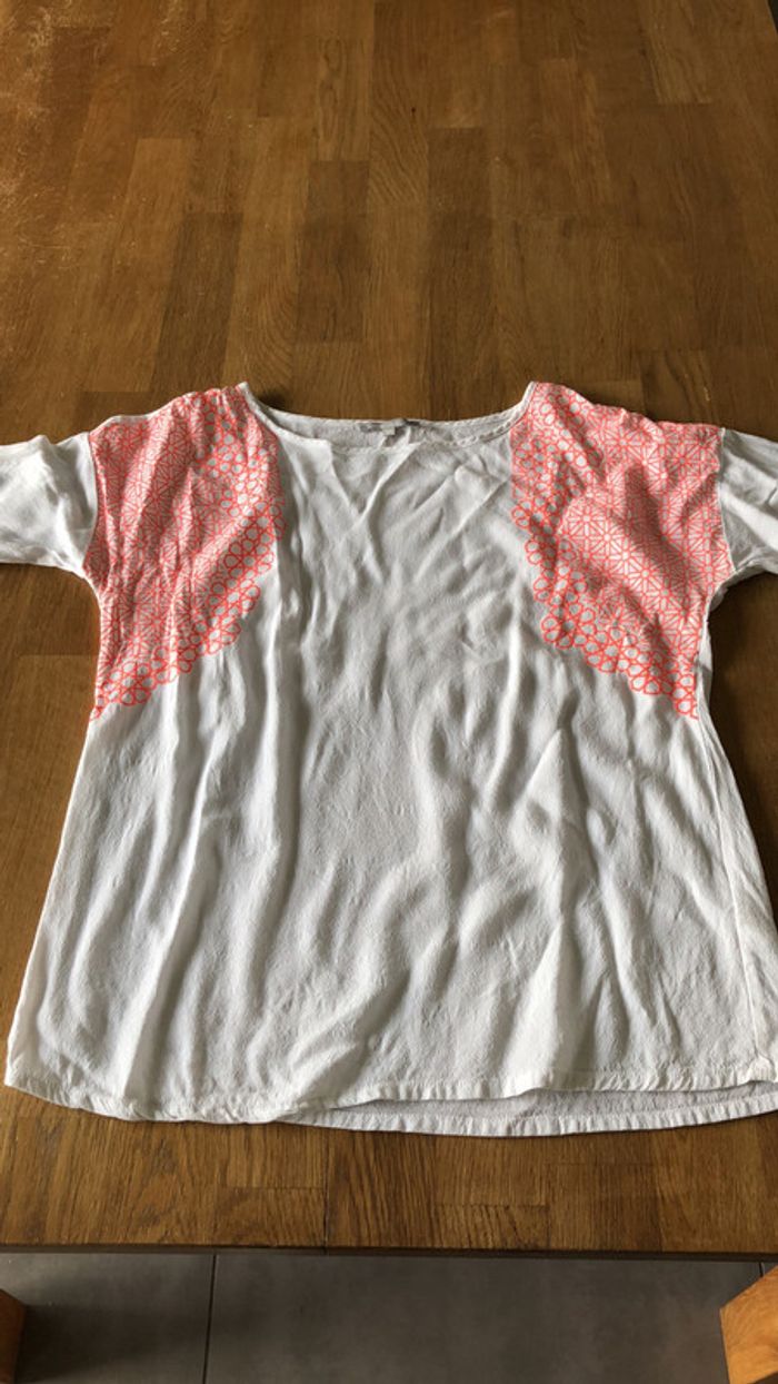 Tshirt en crêpe blanc avec motif orange - photo numéro 2