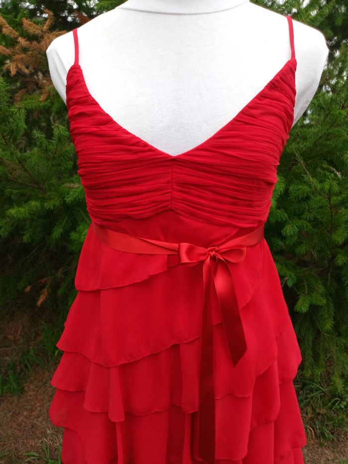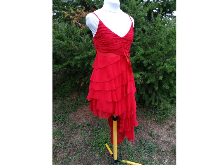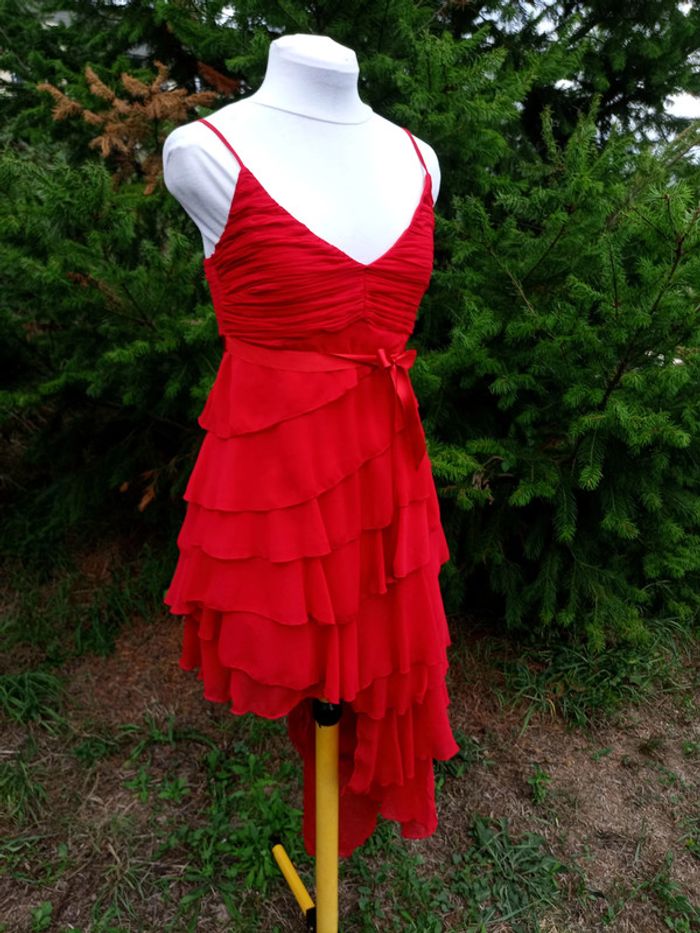 https://metarobecouture.wixsite.com/website robe chic unique, modifiée par MétaRobe taille 36/38 jupe asymétrique zippée sur le coté rouge smocks dans le dos ref : S-257 #metarobe36 #metarobe38