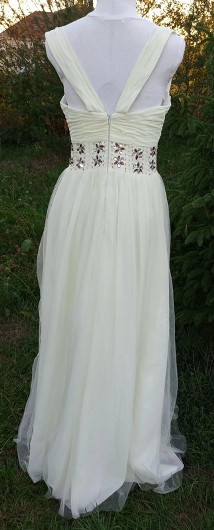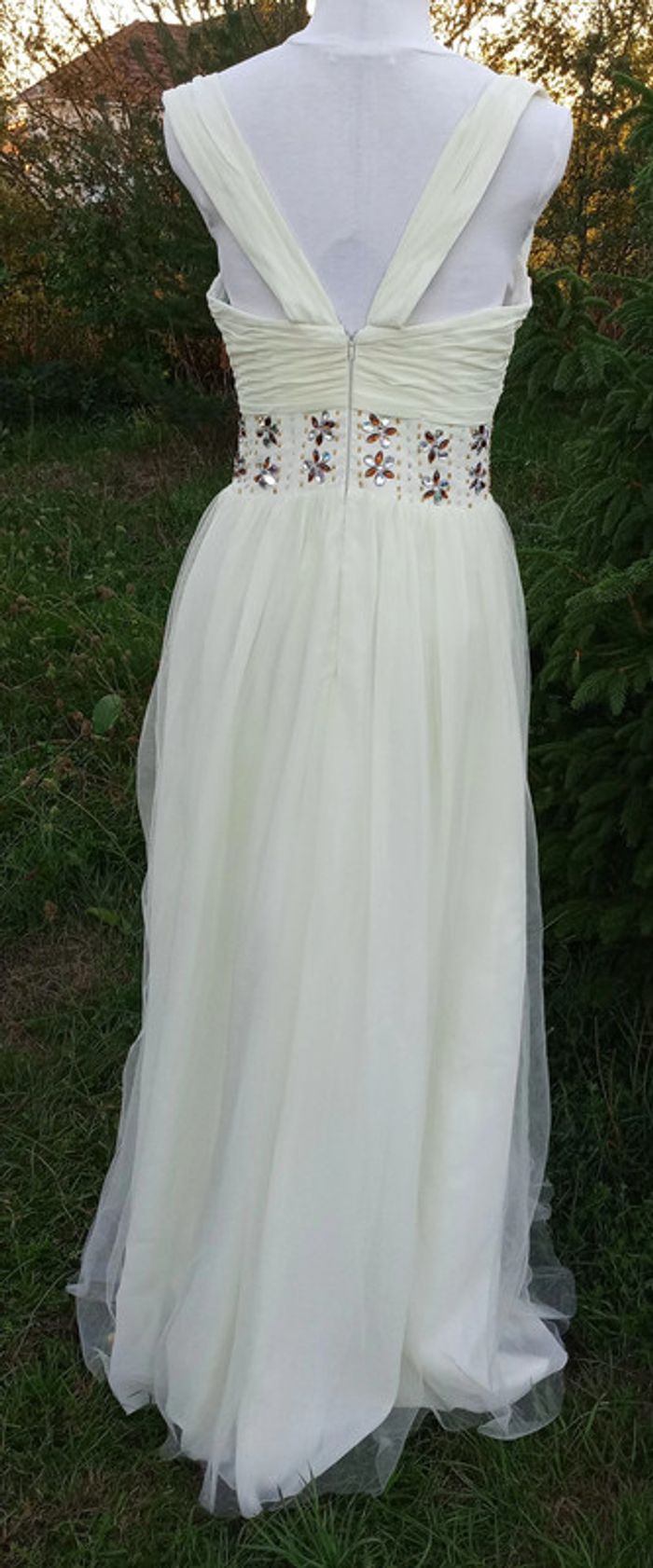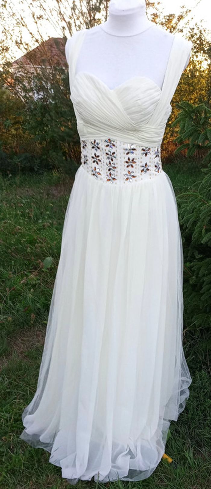 https://metarobecouture.wixsite.com/website Robe chic neuve, juste portée pour un défilé robe chic, couleur crème, jaune pale perles marron et argentées taille36/38 zippée dans le dos Tour sous les aisselles : 91 cm Tour sous la poitrine : 72 cm Tour de taille : 74 cm ref : M-167 #metarobe38 #metarobeS