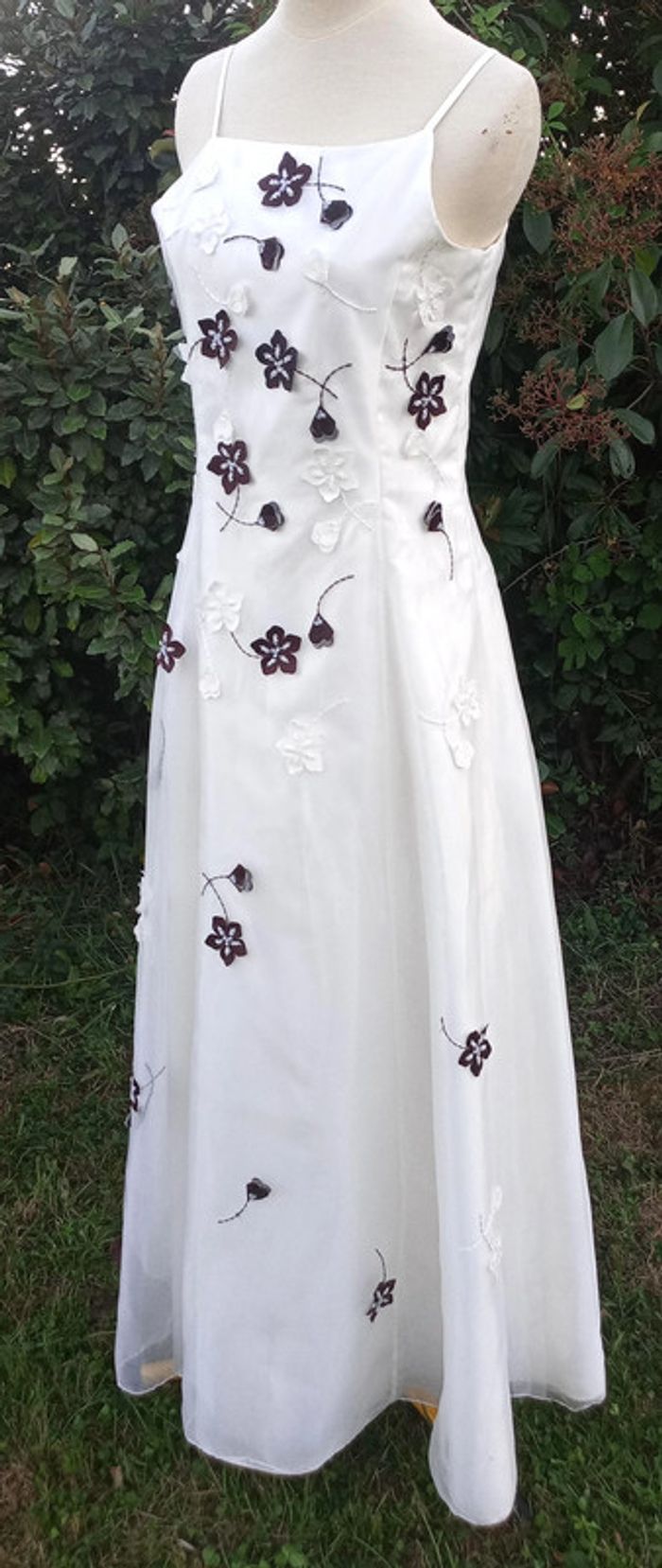 https://metarobecouture.wixsite.com/metarobe/robe-de-mari-e robe de mariée ou robe de demoiselle d'honneur taille 34/36, blanc et marron zippée dans le dos Tour de poitrine : 86 cm Tour de taille : 82 cm ref : XS-038 mes robes de mariées sont une base que je modifie selon les souhaits des clientes ( devis avant tous travaux) #metarobe36 #metarobeXS #metarobemariee #metarobebraderie