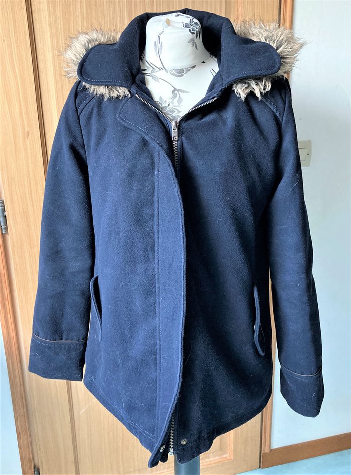 Caban marine à capuche bordure fausse fourrure taille 38/40 - photo numéro 2