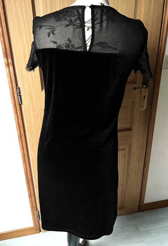 Robe droite noire velours ras, dentelle et tulle taille 38/40 - photo numéro 2