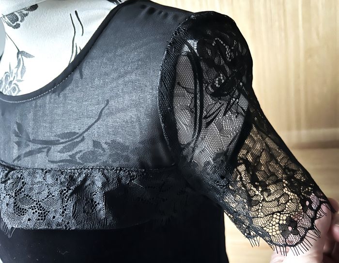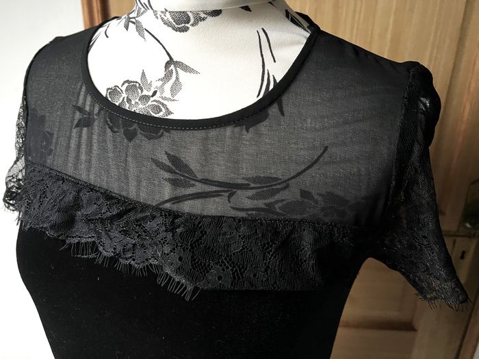 Robe droite noire velours ras, dentelle et tulle taille 38/40 - photo numéro 6