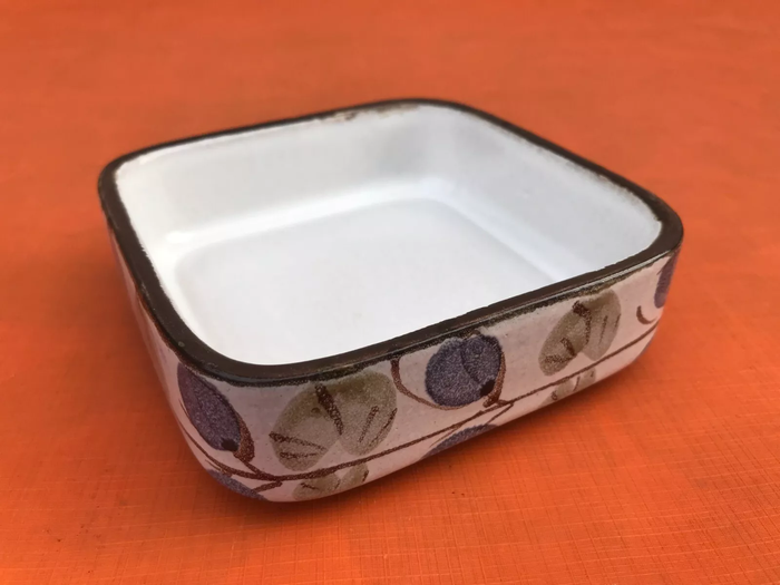Ravier / Coupelle Faïence de Niderviller (Moselle) Manufacture France Collection " Prunes " Longueur : 120mm Largeur : 120cm Hauteur : 40mm Poids : 290grs