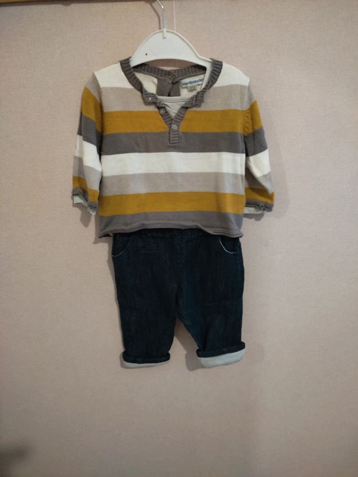 Ensemble de la marque Vertbaudet taille 6 mois garçon composé d'un jean et d'un petit pull