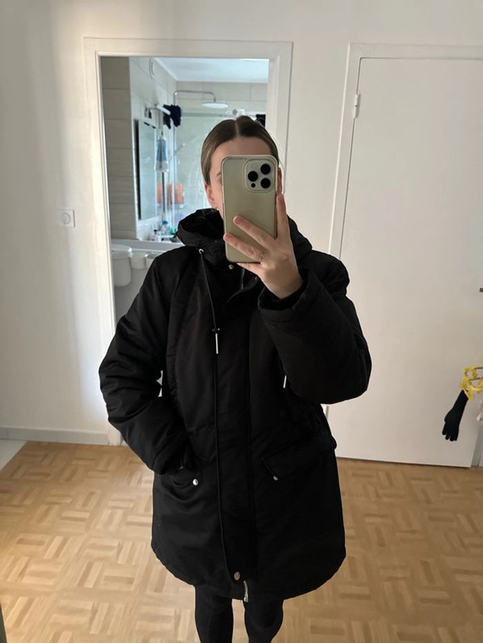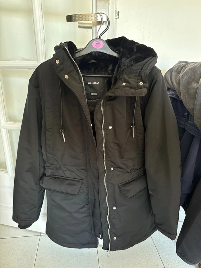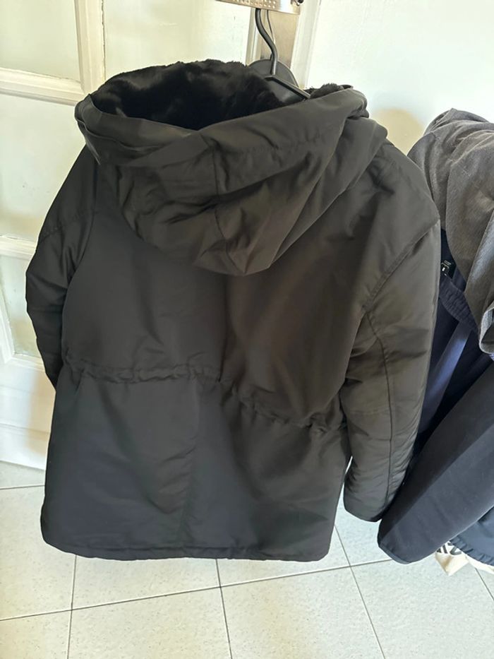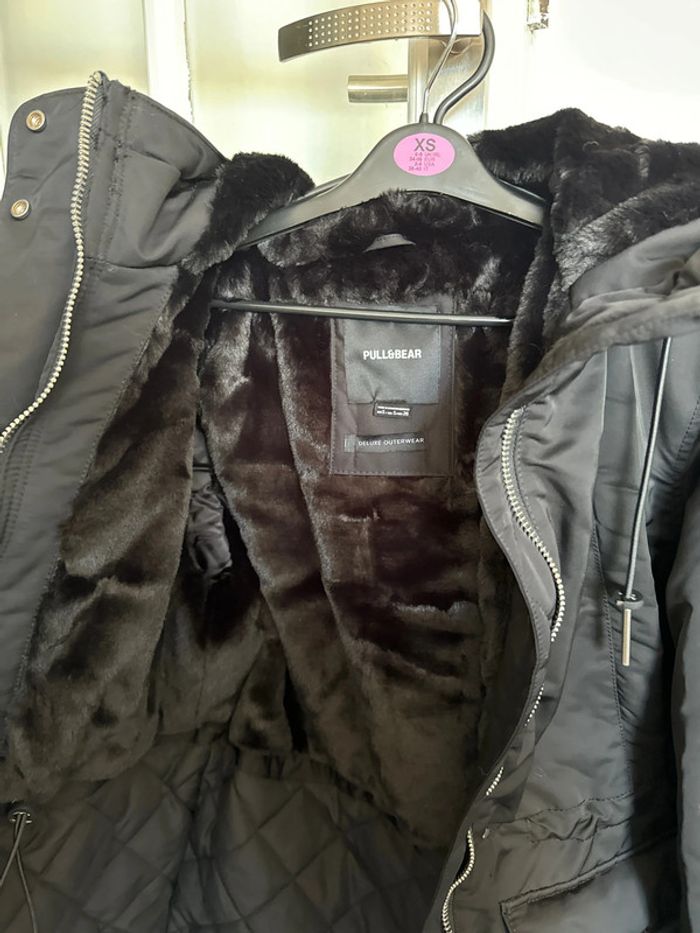 Manteau pull and bear, porté 1 à 2 fois grand max. Tiens chaud, taille correctement. À l’intérieur, il a de la fourrure et également un élastique pour serrer le manteau au niveau de la taille. Il y’a également une fourrure sur la capuche, qui peut s’enlever facile avec un fermeture éclair.