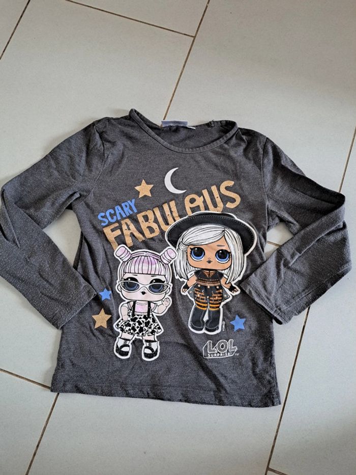 T-shirt manches longues poupée lol 7 ans, présence de petites bouloches, maison non fumeur #shakotte7ansfille