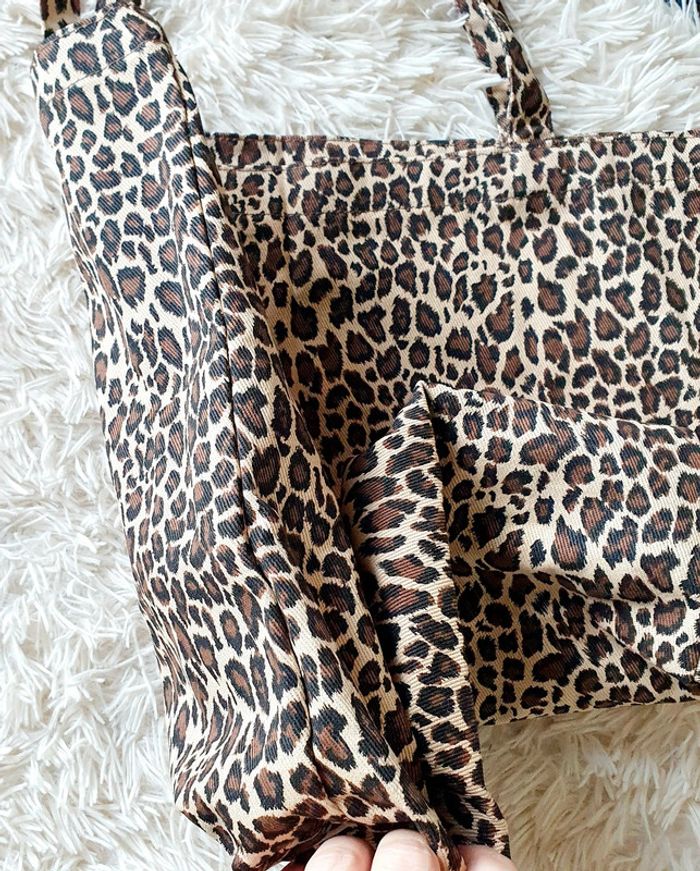 👜 Sac à main totebag fourre-tout cabas sac de cours école courses léopard 🐆 beige marron noir neuf - photo numéro 1