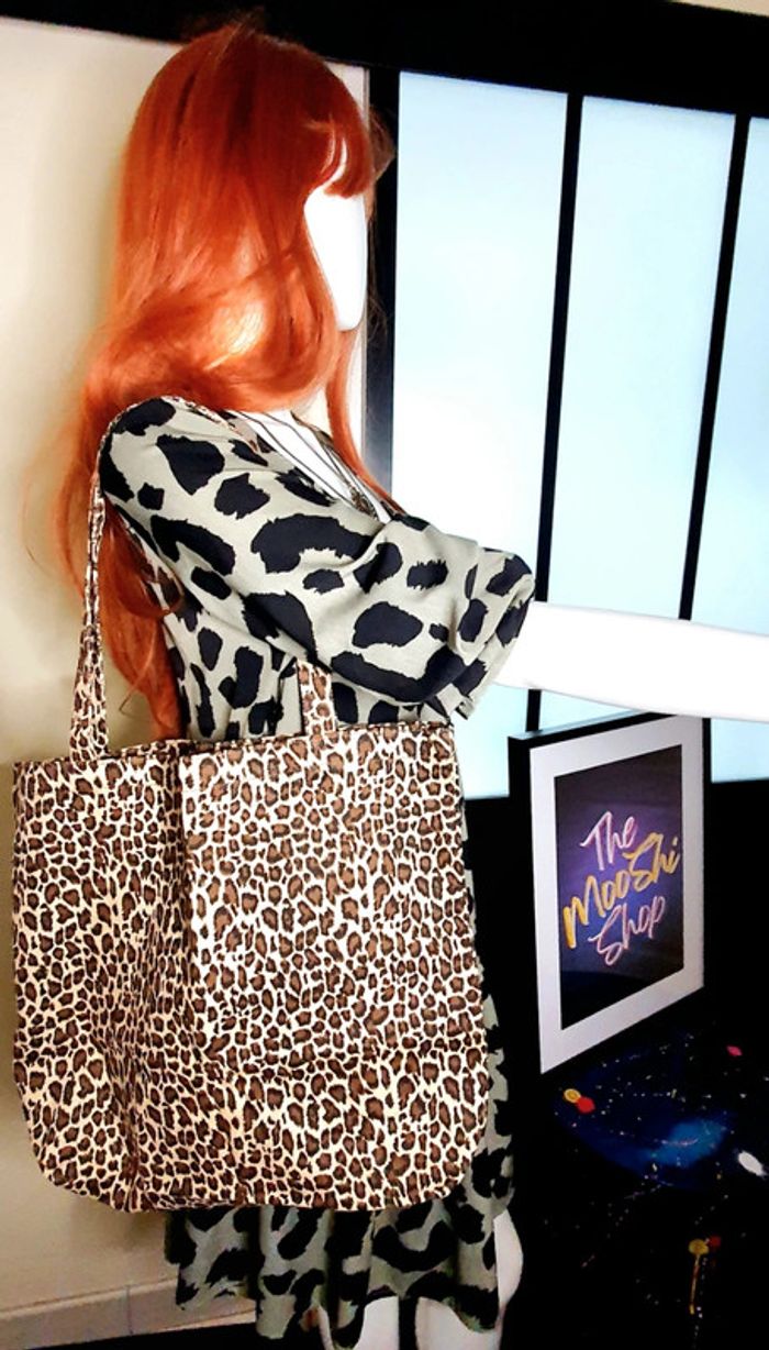 👜 Sac à main totebag fourre-tout cabas sac de cours école courses léopard 🐆 beige marron noir neuf - photo numéro 14