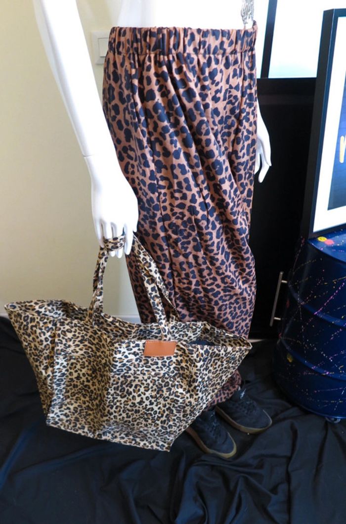 👜🐆 Sac cabas fourre-tout tote bag sac de courses transformable 2en1 léopard neuf - photo numéro 17