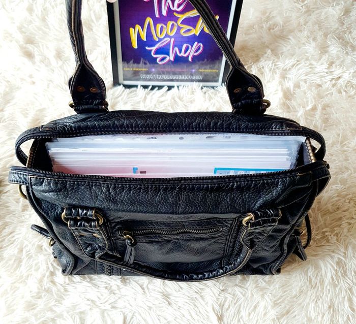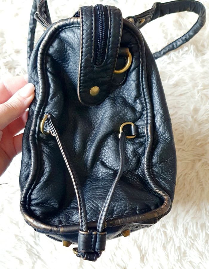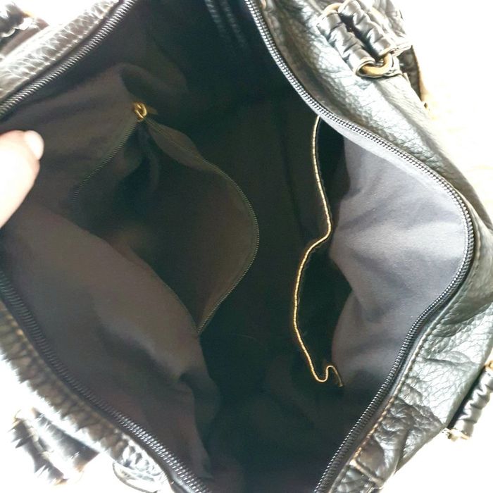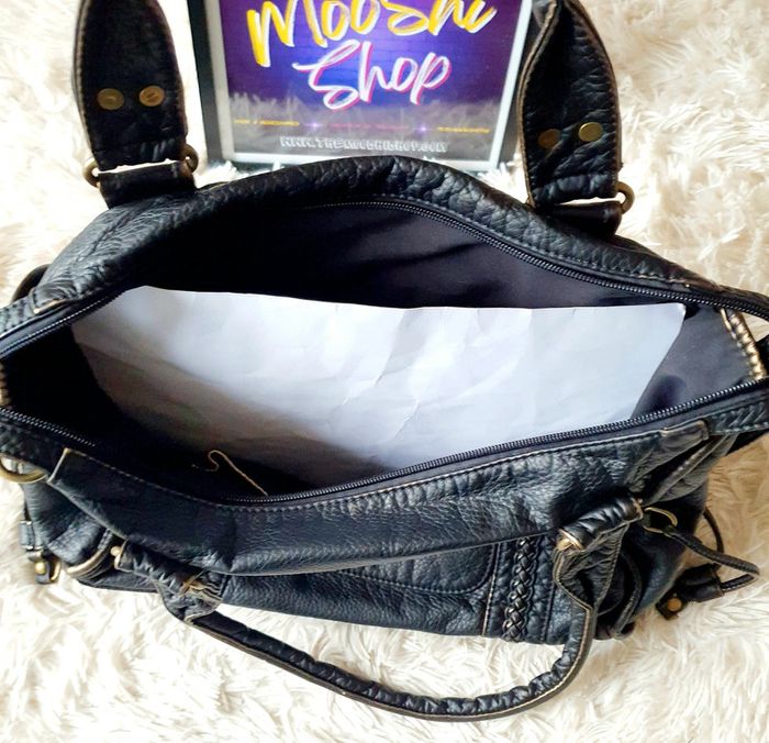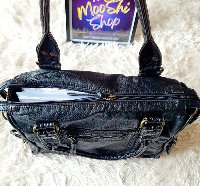 👜 Sac à main multipoches tresses sac de cours école lycée cabas fourre-tout simili cuir noir reflet bronze vintage neuf anses & bandoulière MITZU Les reflets bronze sont beaucoup plus prononcés en réalité que sur les photos 📸 Décoration en simili cuir tressé sur l'avant du sac, doublure polyester noir, clous & boucles dorés vieillis, 2 anses simili cuir, possibilité de mettre une bandoulière réglable (fournie). Sac mode, hyper Pratique, tendance, les zips ont une tirette en cordons de simili cuir, grande poche principale zippée (zip 51.4 cm, les 2 extrémitésdu zip peuvent attachées ou détachées grâce à 1 bouton pression de chaque côté), 1 petite poche zippée à l'avant du sac (zip de 13 cm) ,1 petite poche zippée à l'arrière (zip de 16 cm), il y a des liens de similicuir pendants sur les côtés et 4 clous dorés vieillis en dessous du sac pour le protéger. A l'intérieur, il y a une petite poche zippée sur un côté du sac, 2 poches non zippées de l'autre coté. 📏 Dimensions du sac: Longueur à plat 48.5 cm Hauteur 30.7cm Profondeur 11.8 cm Hauteur des anses 25 cm du haut des anses aux bords du sac et 27 cm avec les coutures Dimensions petite poche zippée intérieure H 15.5 cm x l 28.4 cm Dimensions petite poche non zippée intérieure H 9.2 cm x l 9.8 cm et H 9.2 cm x l 7.8 cm Dimensions petite poche arrière extérieure zippée H 15.4 cm x l 17 cm Dimensions petite poche zippée sur l'avant H 14.8 cm x l 13 cm Dimension maximale bandoulière 140.2 cm 📍 J'ai mis une feuille A4 sur les photos pour vous rendre compte de la taille de ce sac ainsi qu'un classeur classique bien rempli dans le sac. Neuf jamais porté. Prix boutique 69.90e #themooshishop #themooshishopaccessoires #themooshishopsac #sac #cabas #sacdecours #sacamain #sacfourretout #sacsimilicuir #neuf #noir #bronze #refletbronze #vintage #itbag #itbag2025 #sactendance #sactendance2025 #cadeaufemme #cadeau