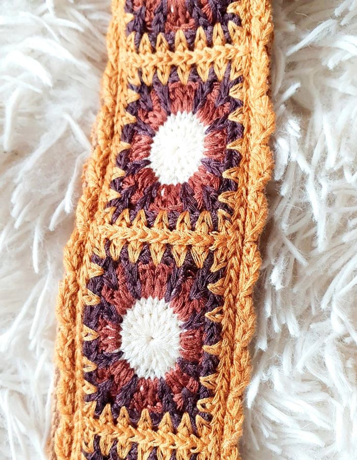 Sangle de sac à main sac banane crochet marron écru fleur rectangulaire multicolore neuve neuf - photo numéro 4