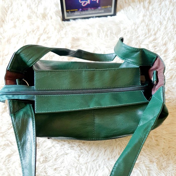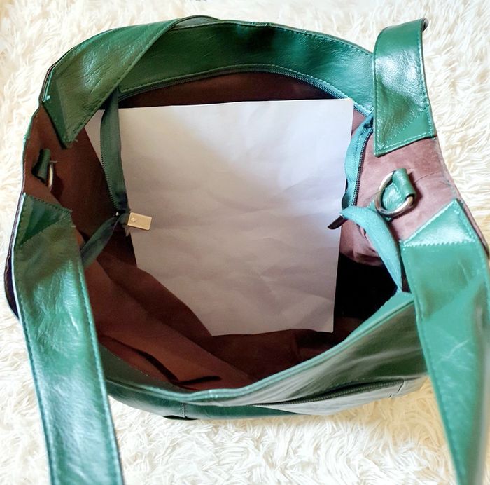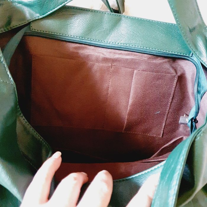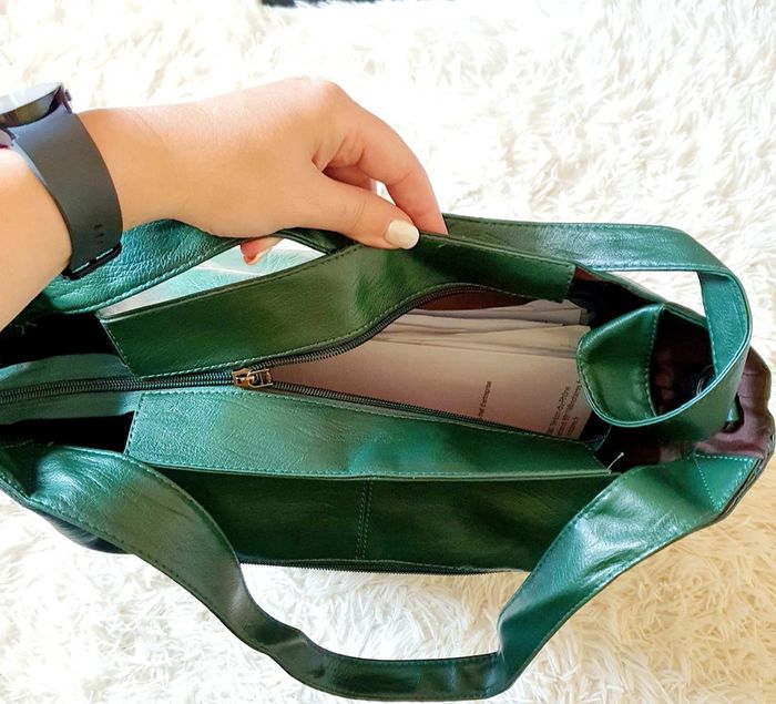 👜 Grand Sac à main souple cabas fourre-tout simili cuir vert neuf MALLOW - photo numéro 10