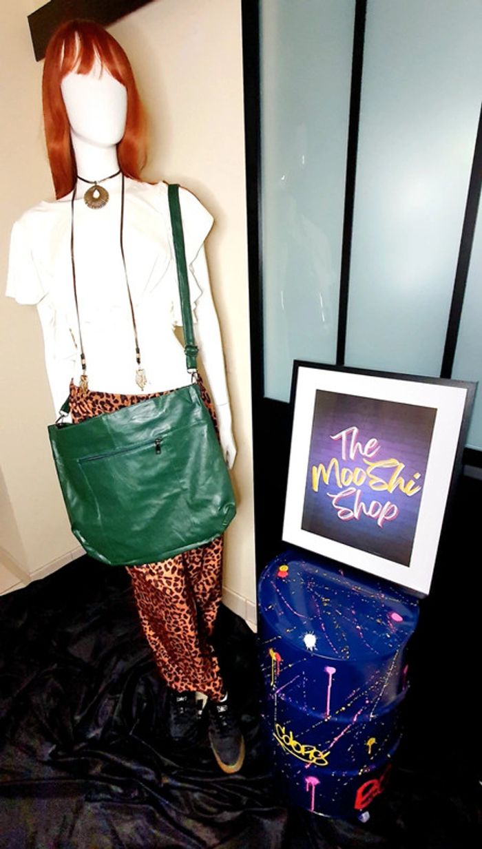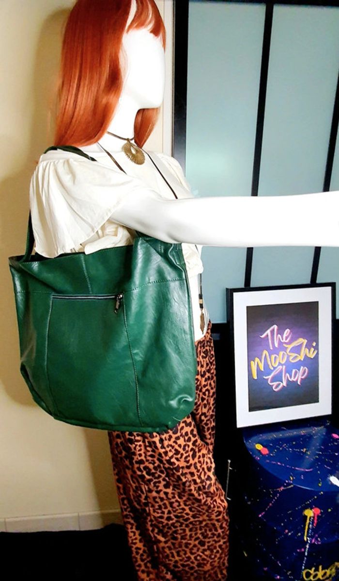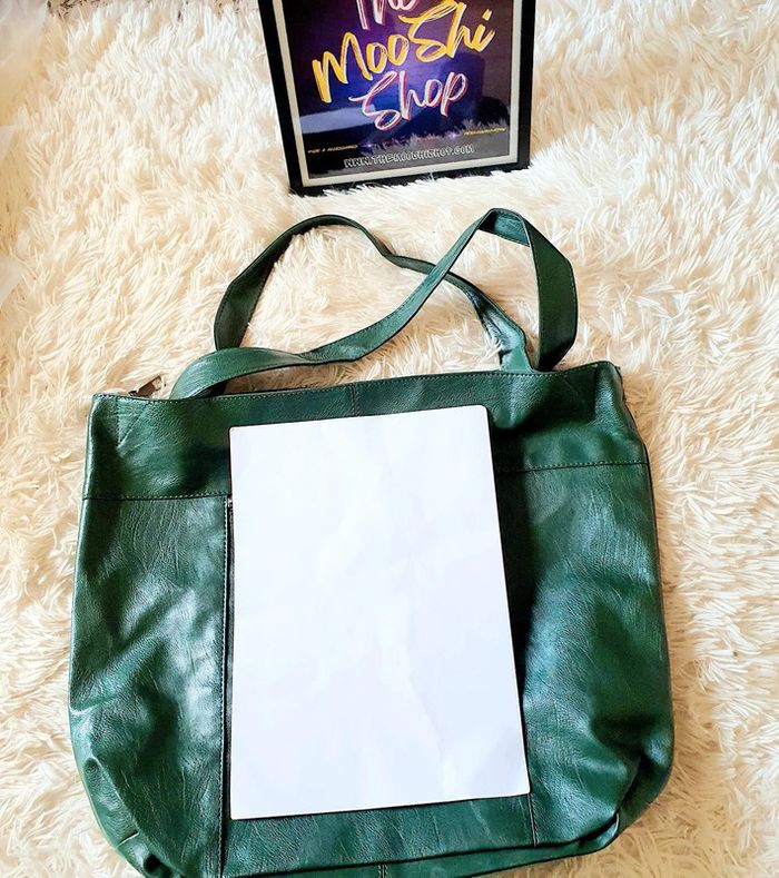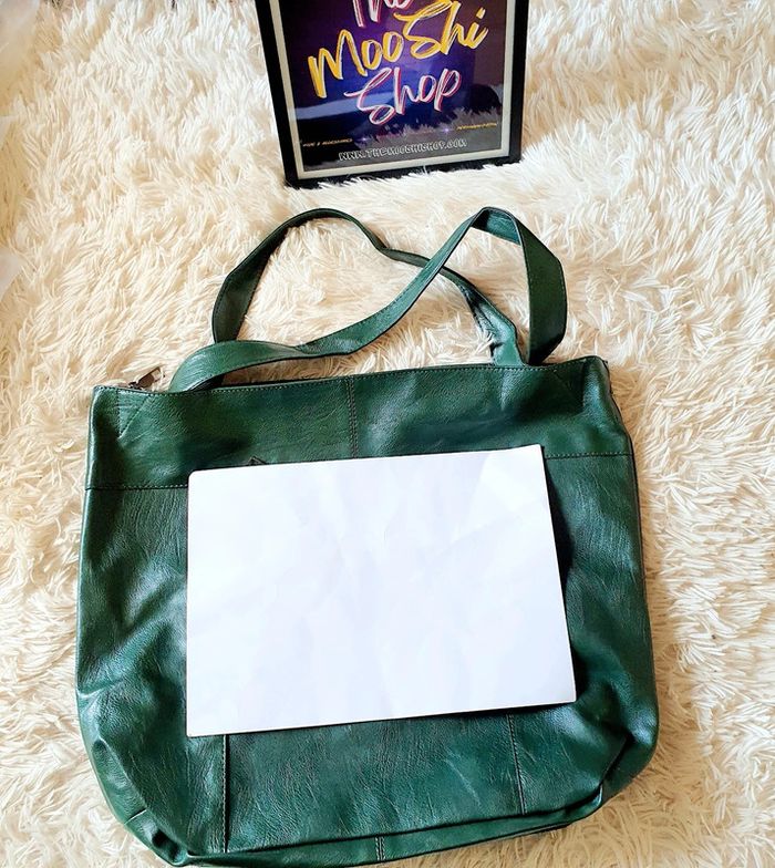 👜 Grand Sac à main souple cabas fourre-tout simili cuir vert neuf MALLOW